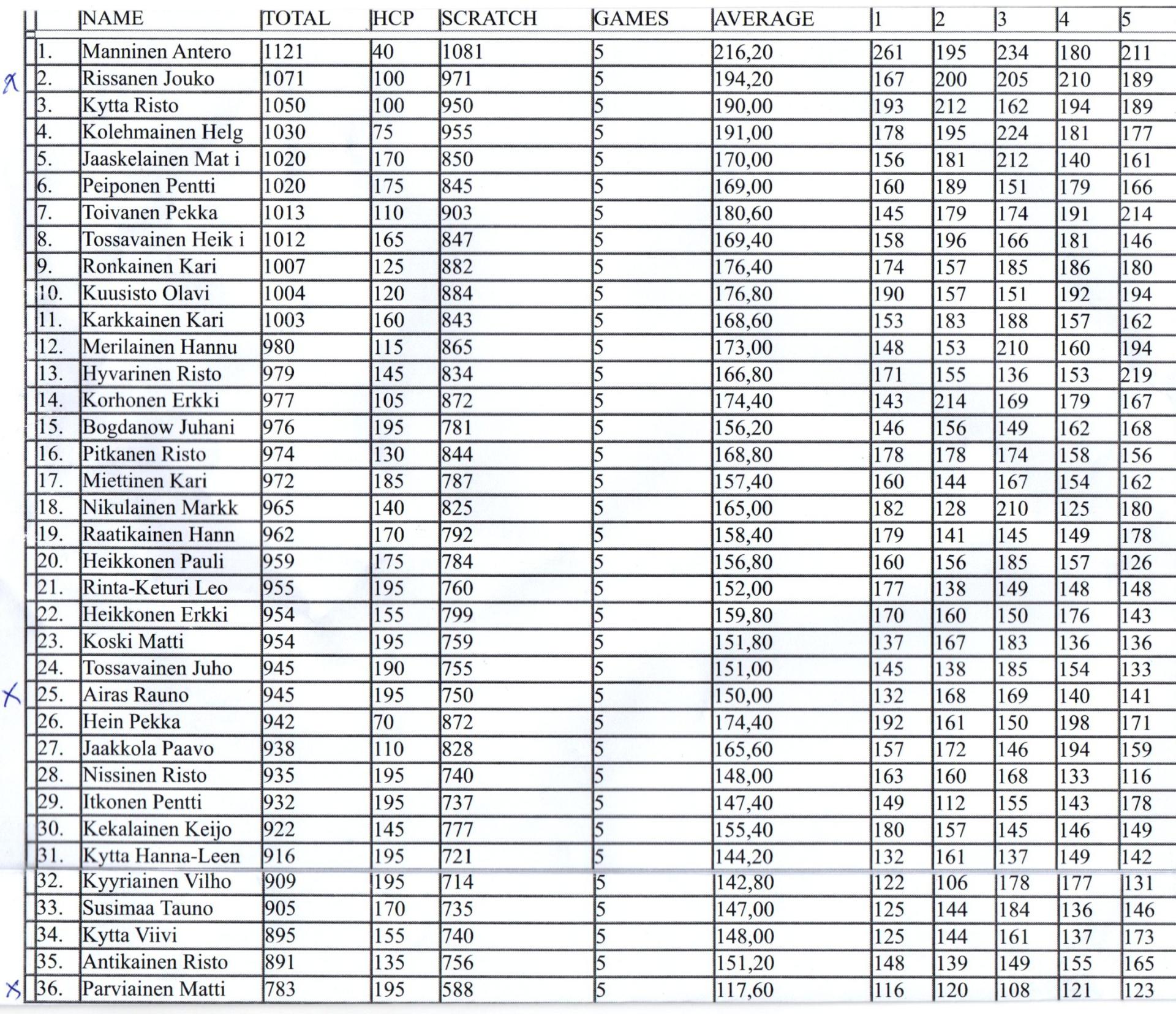 | 36 | Parviainen, Matti | 588 | 195 | 783 | ||